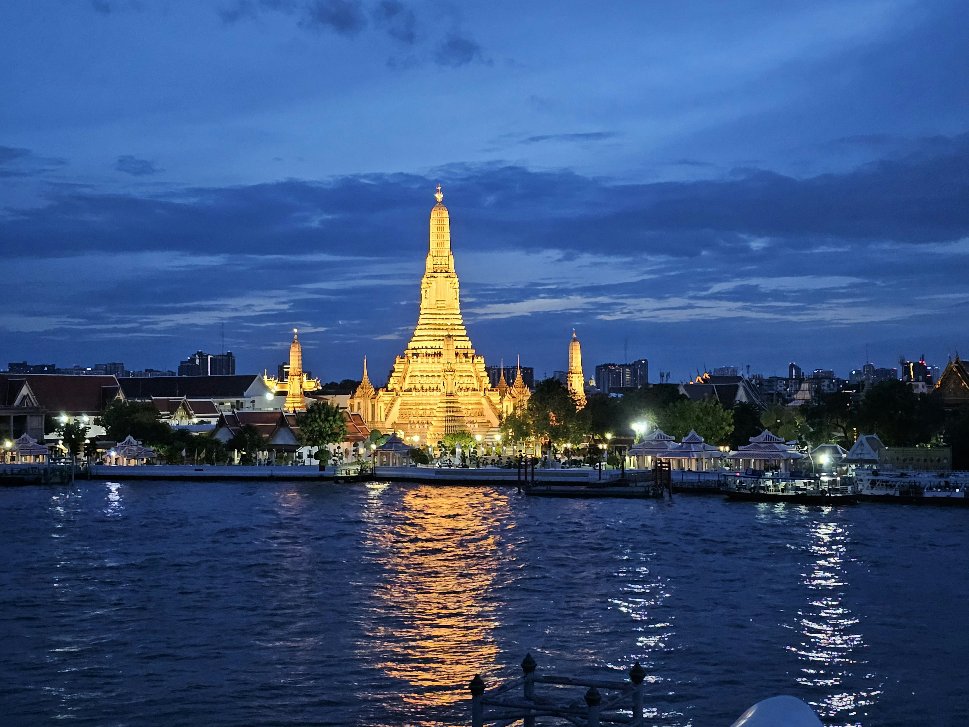 Este templo budista, ubicado a orillas del río Chao Phraya, es uno de los símbolos más icónicos de Bangkok. Fue construido en el siglo XVII y su torre central, decorada con cerámica y fragmentos de porcelana, es una característica distintiva.